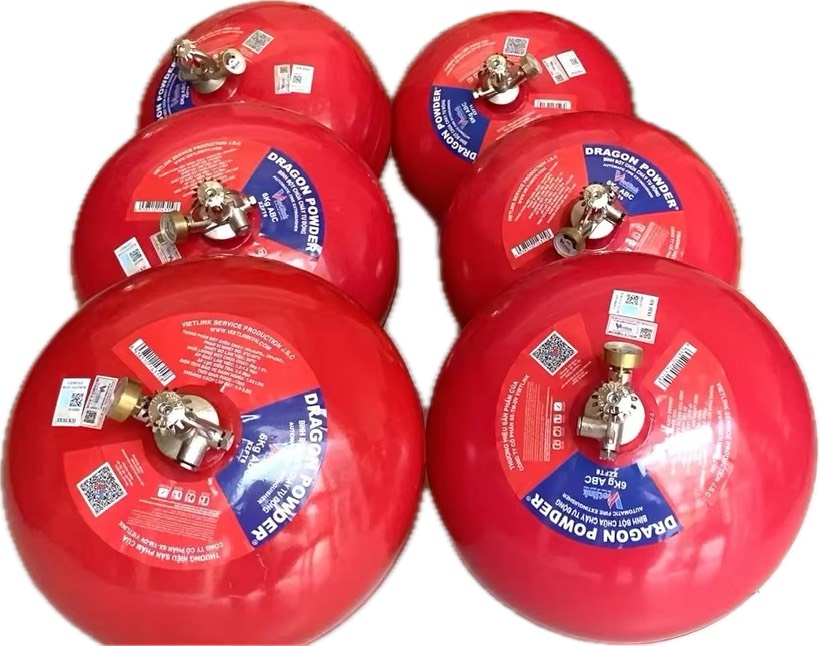 Quả cầu chữa cháy treo tự động Dragon 6kg là thiết bị chữa cháy tự động dùng bột khô ABC, thường được treo ở trần nhà, kho xưởng, khu vực dễ cháy. Khi gặp nhiệt độ cao (khoảng 68°C – 90°C) thì van kích nổ sẽ tự động xả bột chữa cháy ra xung quanh để dập lửa.
